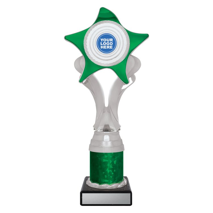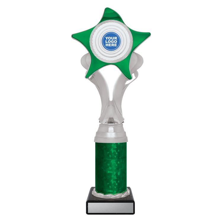 Radiant Athena holder series of trophies perfectly shows off your custom logo over a number of sizes. Choose colour combination to best suit your awards.