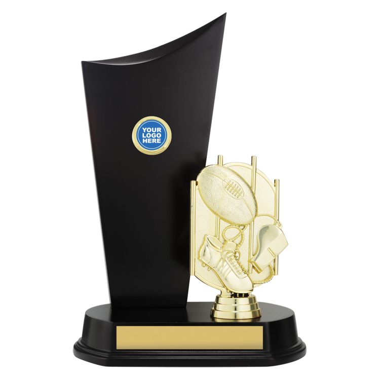 Striking series of timber wing based trophies – multiple sizes and space for your logo insert. Tops for all sports available.