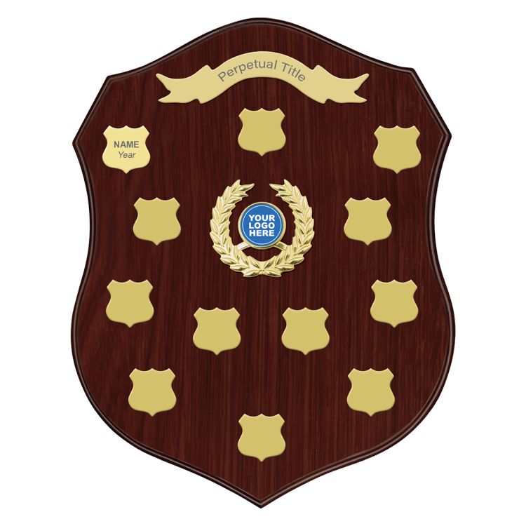 All Assembly Shields include plate place & shield holders allowing for ease of future use. Simply place future shields over the perfectly aligned place holders. Add to your perpetual a classic holder for your custom logo.