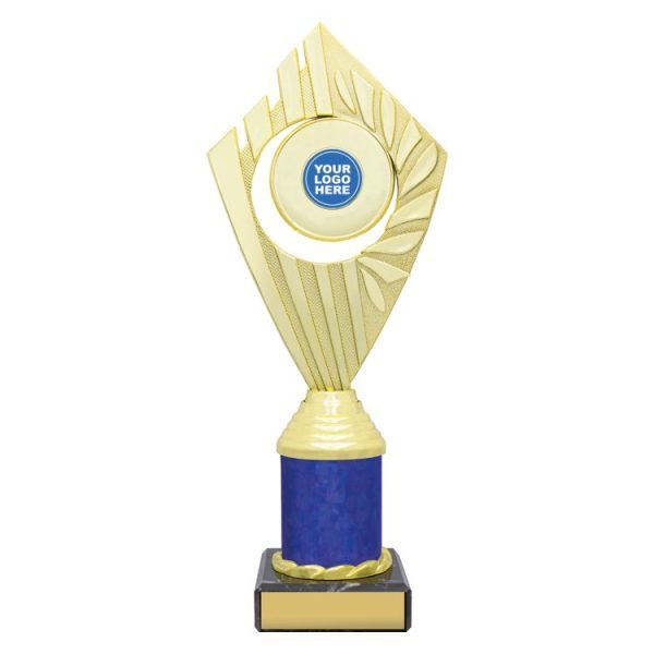 Flyer Series of trophies feature beautifully designed holders on columns of different colours – option to showcase 25 or 50mm logo or insert.