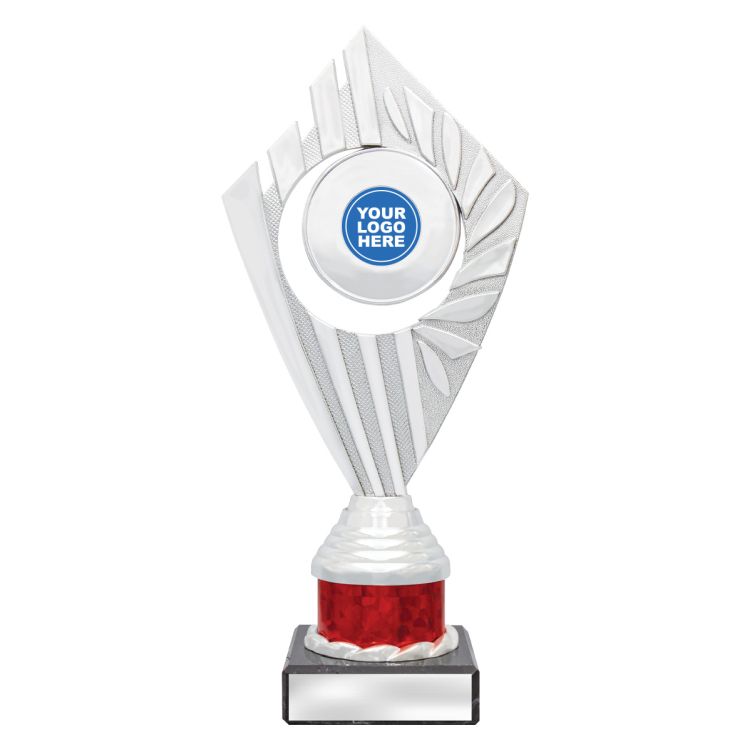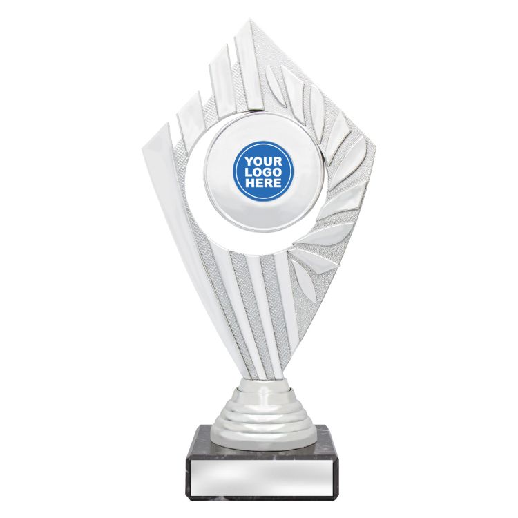 Flyer Series of trophies feature beautifully designed holders on columns of different colours – option to showcase 25 or 50mm logo or insert.