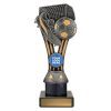 Traditional styled soccer trophies in classic antique silver feature bold design of top with space to showcase your custom logo.