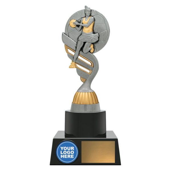 Reliable trophies for your club or team – stylish top finished in classic antique silver and gold colours with prime space for your logo if required.