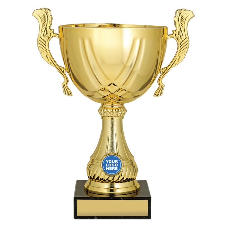 Gold cups present stylish metal bowls and classic marble bases over 4 convenient sizes. A universal design that is well suited to many different events and presentation. This series of awards is perfect to present your custom logo insert.