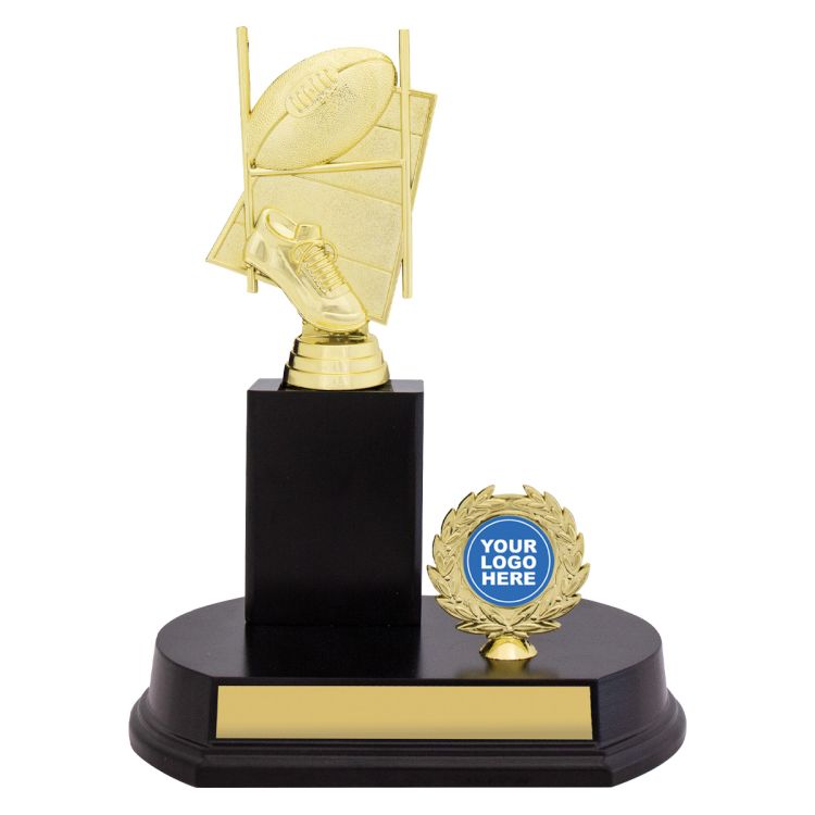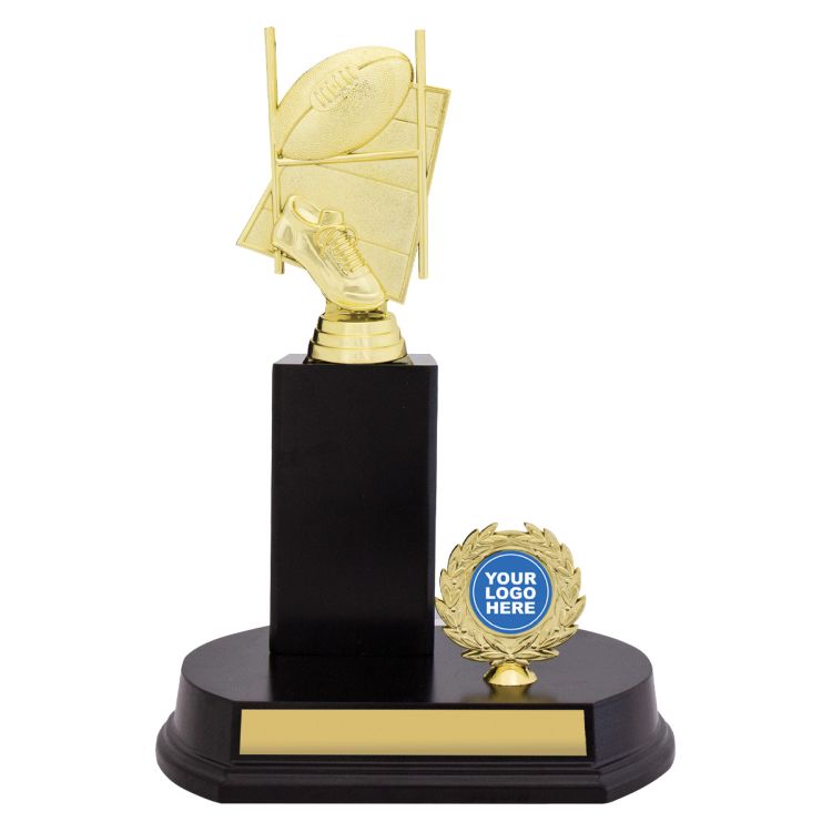 Distinctive design of timber trophy highlights the top for your sport and showcases your custom logo. Available in multiple sizes.