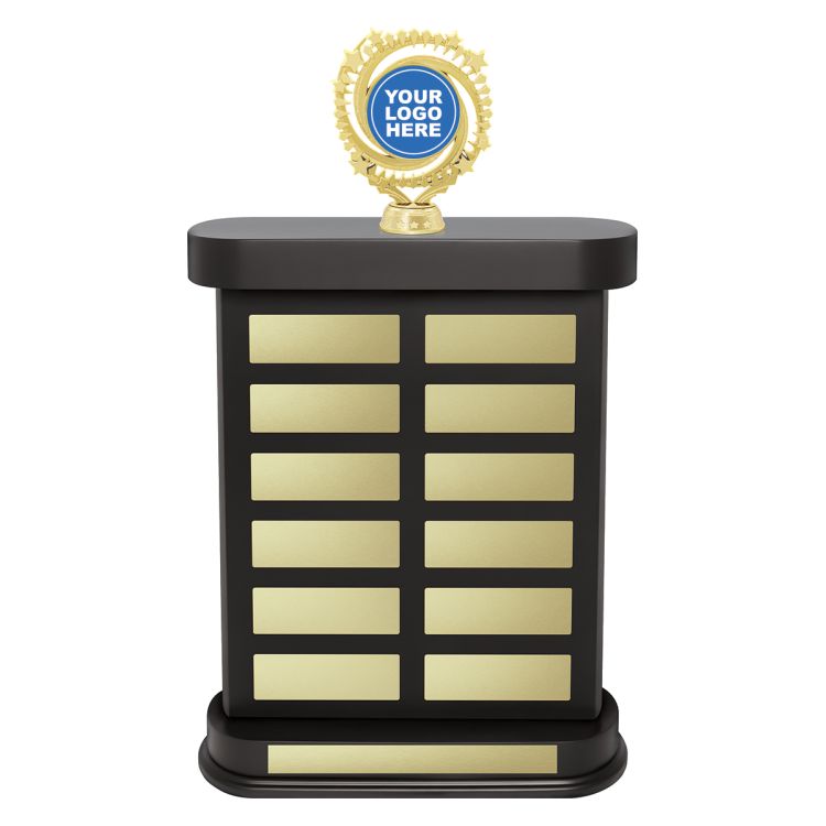 Excellent perpetual award featuring classic black finish & broad space for your engraving requirements. Rampart perpetual features trophy holder to showcase your custom logo.