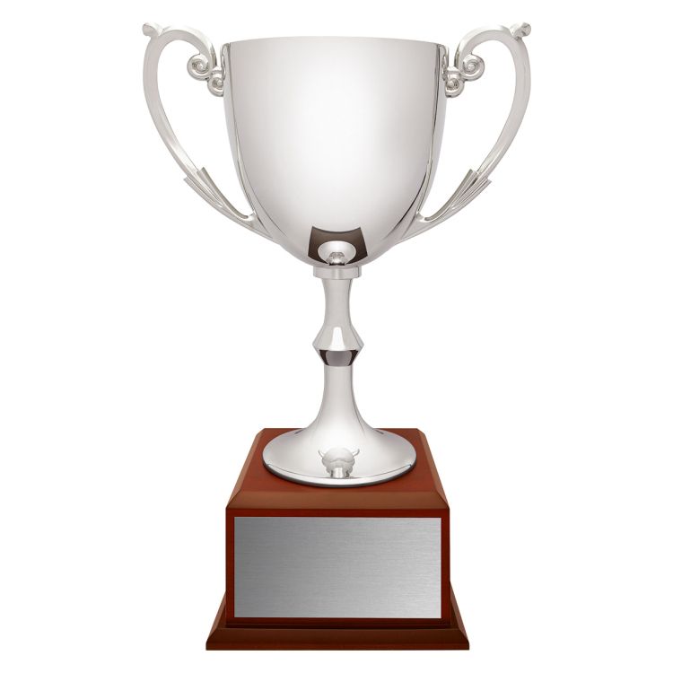 Prestige silver cups presented on superbly finished timber bases represent the pinnacle in recognition. Ample space for personalisation.