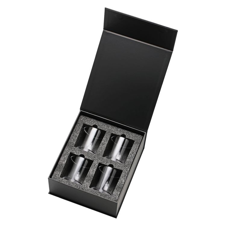 Excellent award or gift idea – 4 classic whisky glasses included in a premium gift box for optimal presentation purposes. Engrave whisky glasses to your exact specifications.